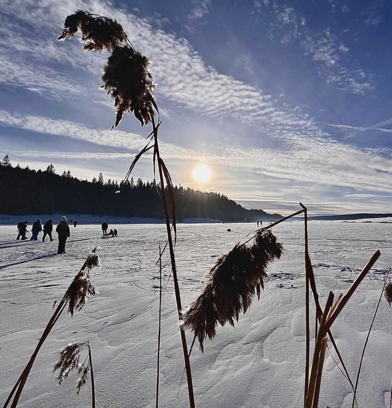 Oui, lors des périodes de grand froid caractéristiques de la Brévine, le lac peut geler et se transformer en vaste surface glacée.
